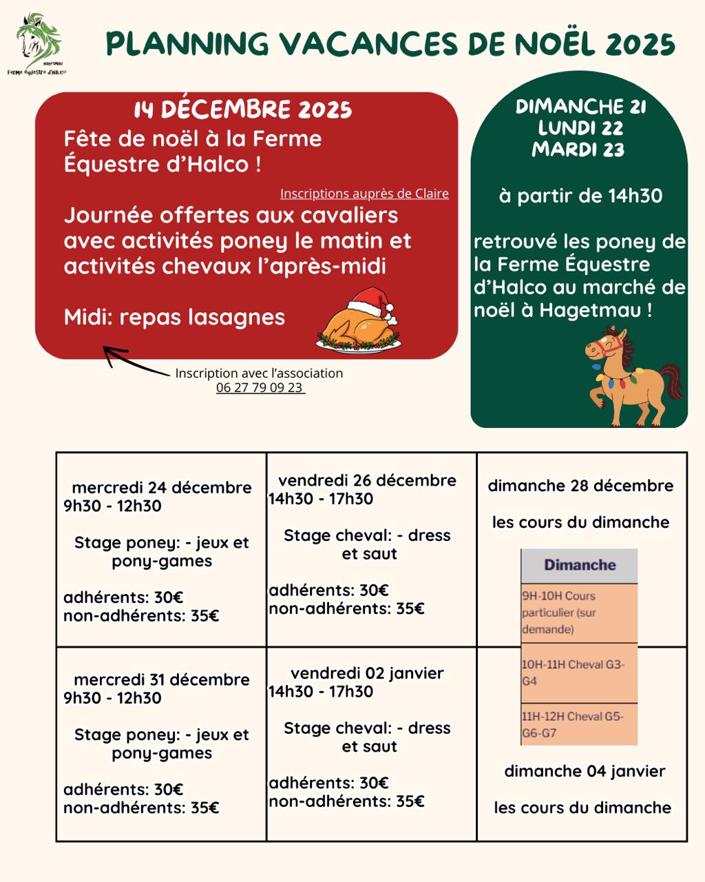 | Ferme Equestre d’Halco – Planning des cours 2025 – 2026 | |||||